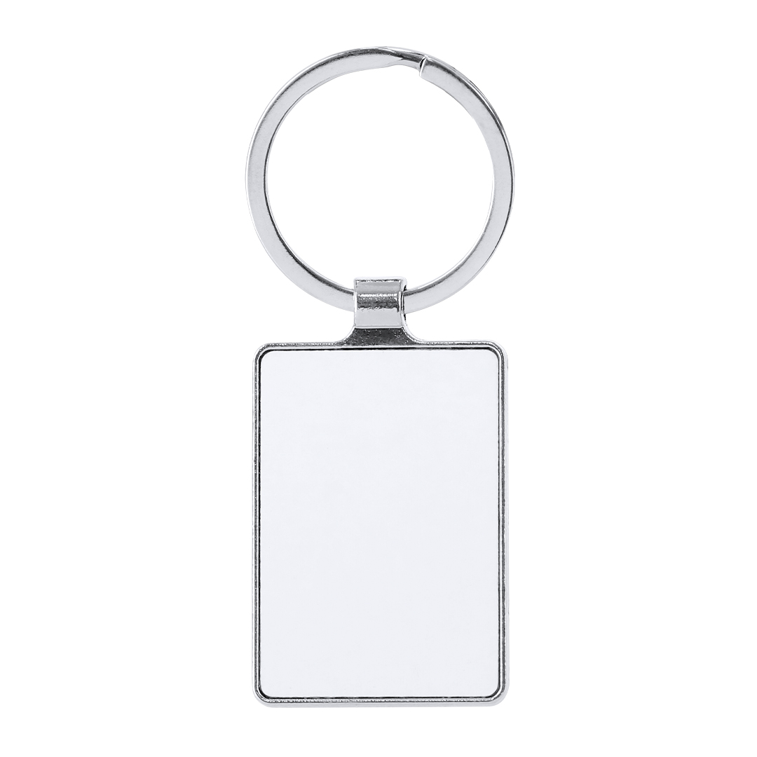 Llavero con diseño de placa metalizado con anilla metálica. La placa incluye superficie ideal para sublimación.