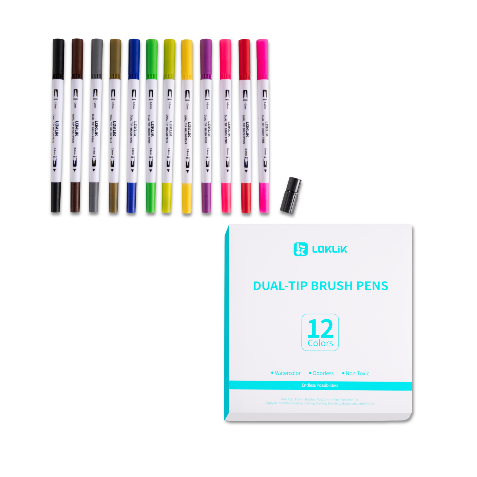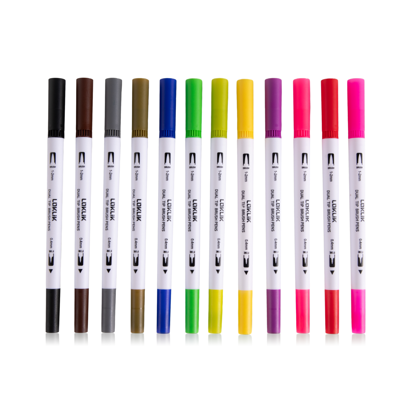 Descripción Los rotuladores de doble punta LOKLiK, disponibles en 12 vibrantes colores, ofrecen una versatilidad y libertad creativa inigualables. Cada rotulador cuenta con una punta de pincel de 1-2 mm para trazos audaces, coloración y caligrafía expresiva, mientras que la punta fina de 0,4 mm es perfecta para detalles precisos, diseños complejos y contornos delicados, y puede usarse con LOKLiK Crafter e iCraft™. Ideales para artistas, aficionados a las manualidades y entusiastas de la caligrafía, estos rotuladores ofrecen colores vibrantes que brindan una aplicación suave y uniforme en diversos tipos de papel. Ya sea que trabajes en ilustraciones detalladas, caligrafía o proyectos de coloreado, los rotuladores de doble punta LOKLiK te ofrecen la flexibilidad y el control que necesitas para dar vida a tu visión artística con resultados impresionantes. Los rotuladores son a base de acuarela, inodoros y no tóxicos.