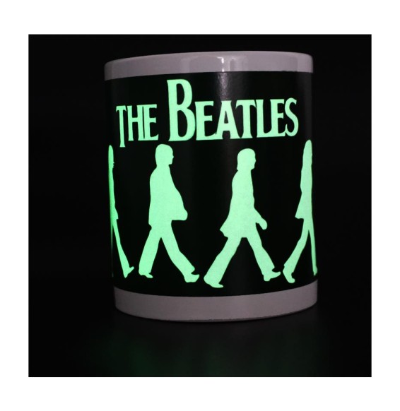 Taza de cerámica blanca con ventana fotoluminiscente personalizable mediante sublimación. La franja luminosa se carga con la luz y brilla en la oscuridad.