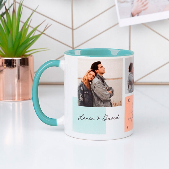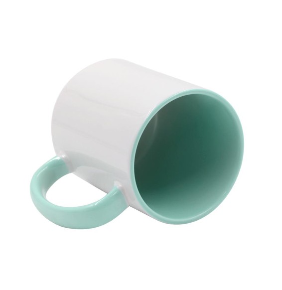 Tazas de cerámica de 11 oz para sublimación con interior y asa de color turquesa.