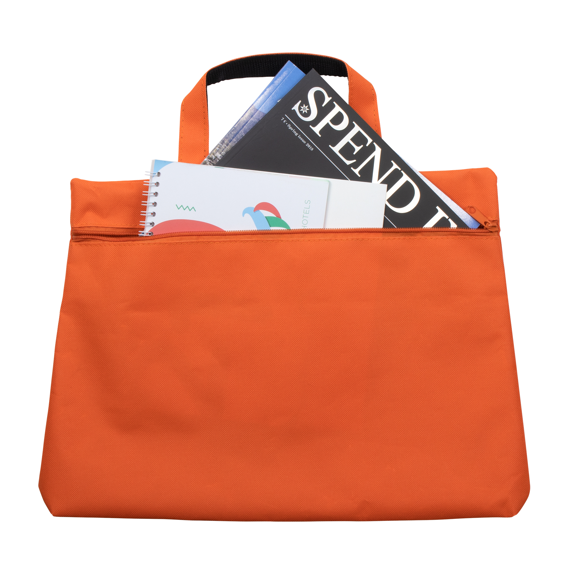 Portadocumentos de poliéster 600D en varios colores con asa de transporte y cremallera a juego.