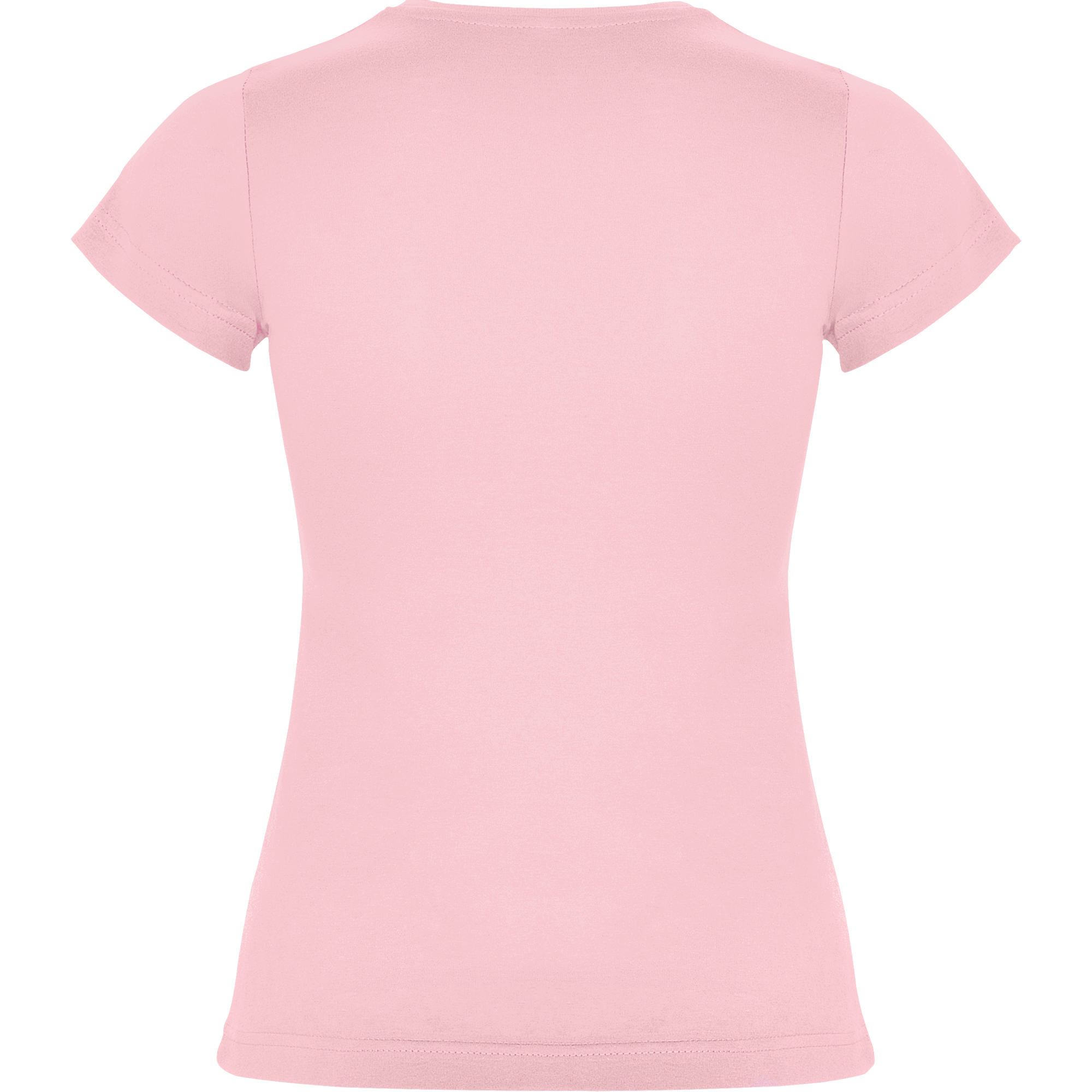 Camiseta de manga corta entallada. Cuello redondo de dos capas en canalé 1×1 con cubre costuras de hombro a hombro. Costuras laterales.